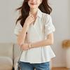 Sky Blue Lapel Slim Short-sleeved Shirt for Women In Summer Temperament Commuting French V-neck Niche Shirt