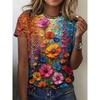 Summer Casual Printed Comfortable Temperament Round Neck Pullover Short Sleeved Women's Shirt