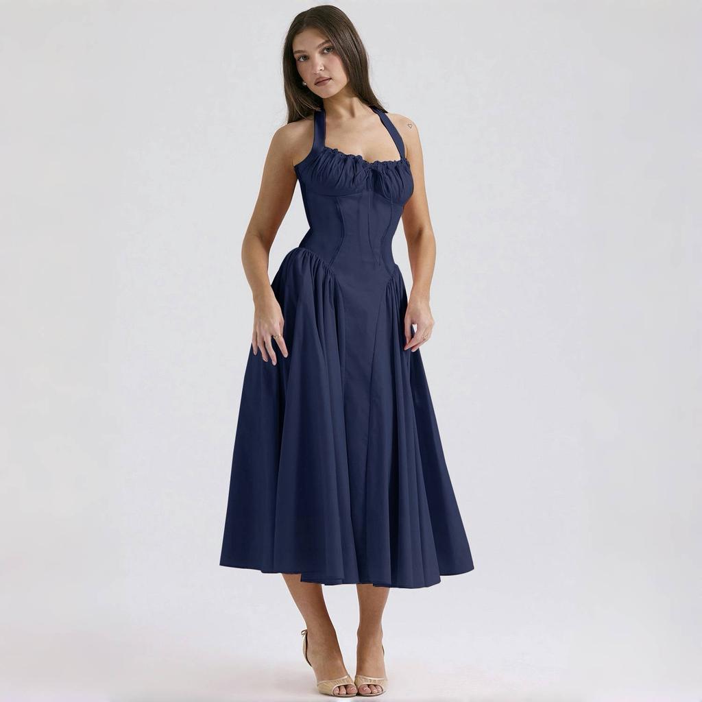 LYRIA Elegant A Line Midi Dress New Arrivals Halter Sexy Holiday Party Dresses Summer Women's Clothing Wholesale