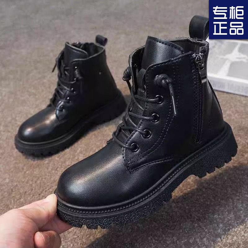 Children's Martin Boots Boys and Girls Winter New Fashion Leather Boots Side Zipper Waterproof Snow Boots Short Boots Non-slip