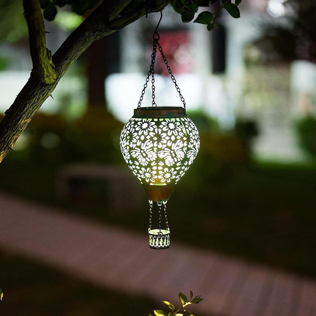 - 【Hollowed Out Pattern】Outdoor Solar Hanging Lantern with Hot Air Balloon Shape and hollow flower pattern, unique and very decorative, projecting a charming shadow at night