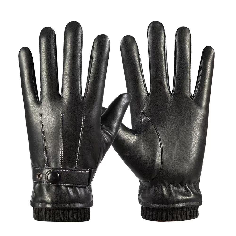 Autumn and Winter Men's Leather Gloves PU Touch Screen Waterproof, Windproof and Warm Adult Velvet Driving Full Finger Outdoor Riding