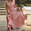 Women Bohemian Summer Floral Casual Loose Long Maxi Dress Beach Swing Short Sleeve
