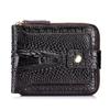 LAOSHIZI Men's Genuine Leather Crocodile-Embossed Wallet RFID Blocking Multi-Card Slots & Photo Holder Horizontal Bifold Design