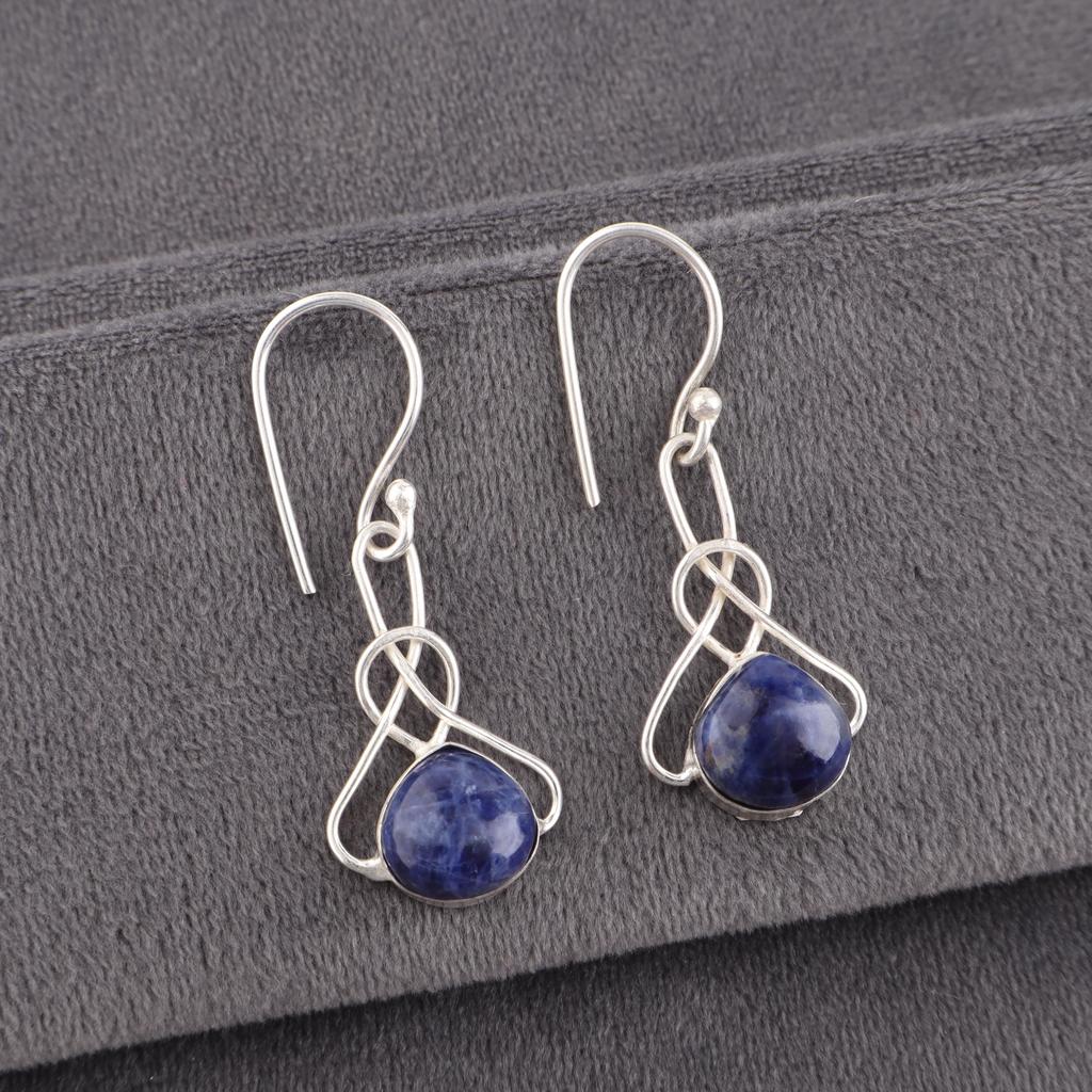 Sodalite Handmade Gemstone Earrings, 925 Sterling Silver Earrings Everyday Jewelry, Earrings For Engagement Gift