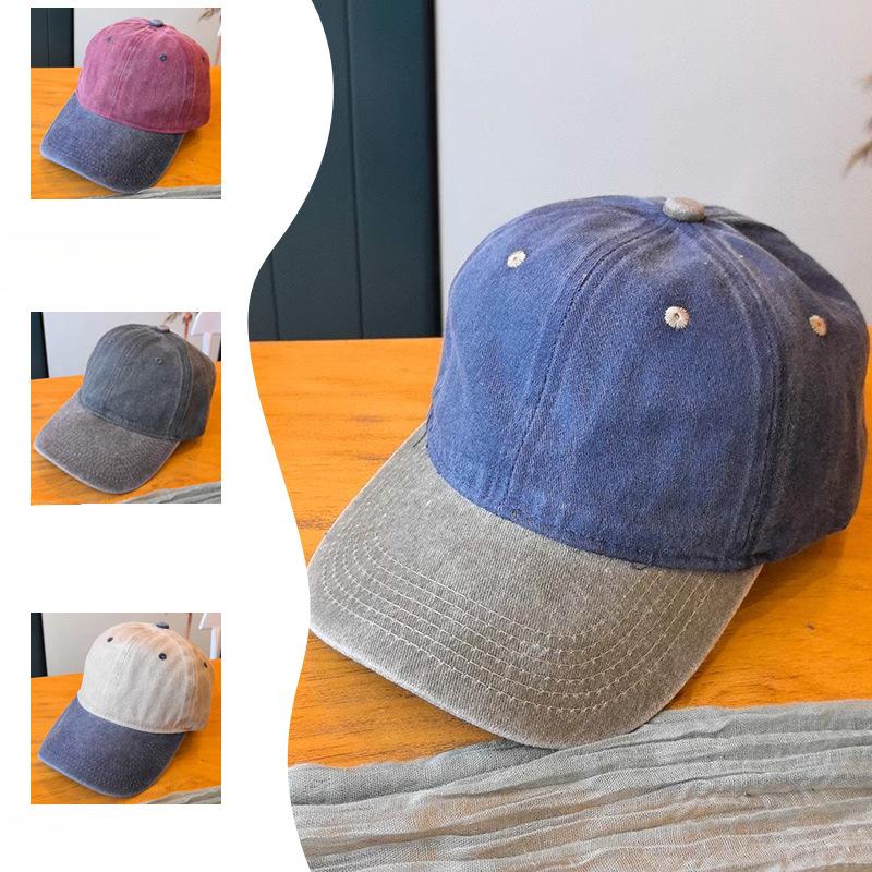 Retro Color-blocked Denim Brim Ponytail Baseball Cap Personality Curved Brim Sports Hip Hop Style Baseball Cap Adjustable