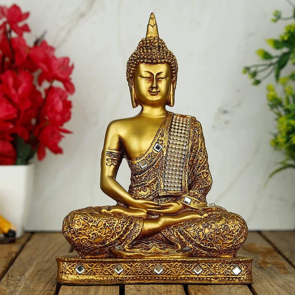 Religious Idol of Lord Gautama Buddha Statue Decorative Showpiece - 24 Cm (Polyresin, Gold)