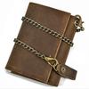 Vintage Genuine Leather Men Wallet Crazy Horse Leather Male Cowhide Trifold Card Holder Wallet with Metal Chain