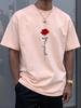Men's T-shirt Summer Fashionable Casual Sports Loose Red Rose Pattern Printed Round Neck Short Sleeved Top