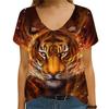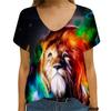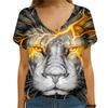 Summer Lion Print Trend 3d Women's V-neck Fashion Short Sleeved T-shirt