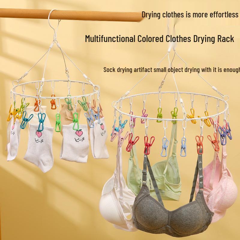 Colorful Rainbow Clothes Drying Rack with Multi-Clips - Windproof, Round, Ideal for Dorms, Balconies, Socks, and Children's Clothing