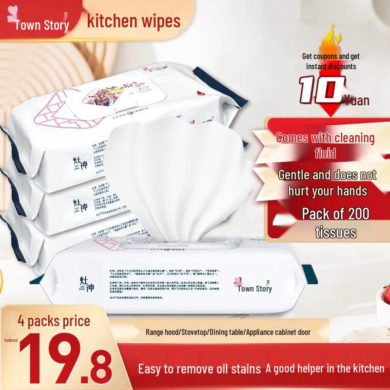 Flower Town Large Kitchen Degreasing Wipes - Thick, No-Wash, Powerful Cleaning for Home and Restaurant