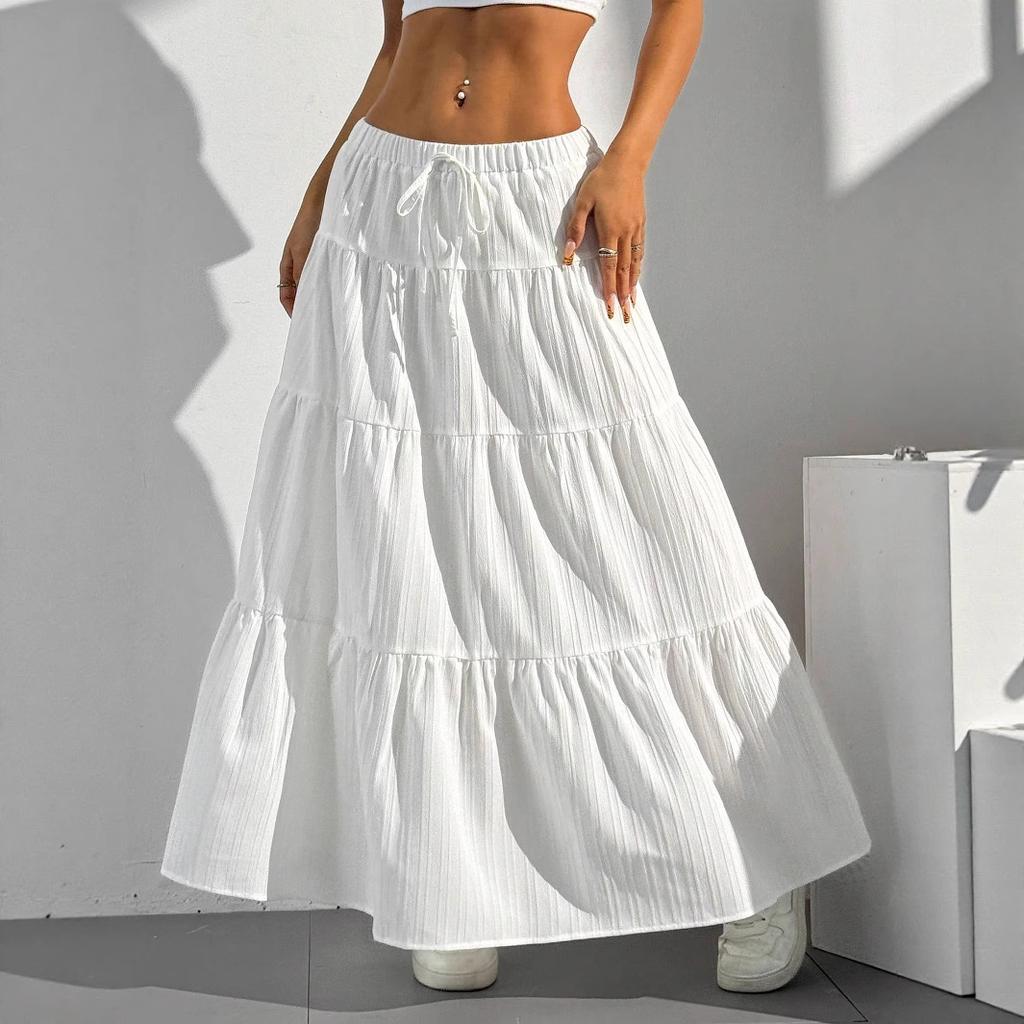 Women's White Half Skirt with Sash Flared Skirt European and American Style Loose Long Skirt Elegant