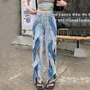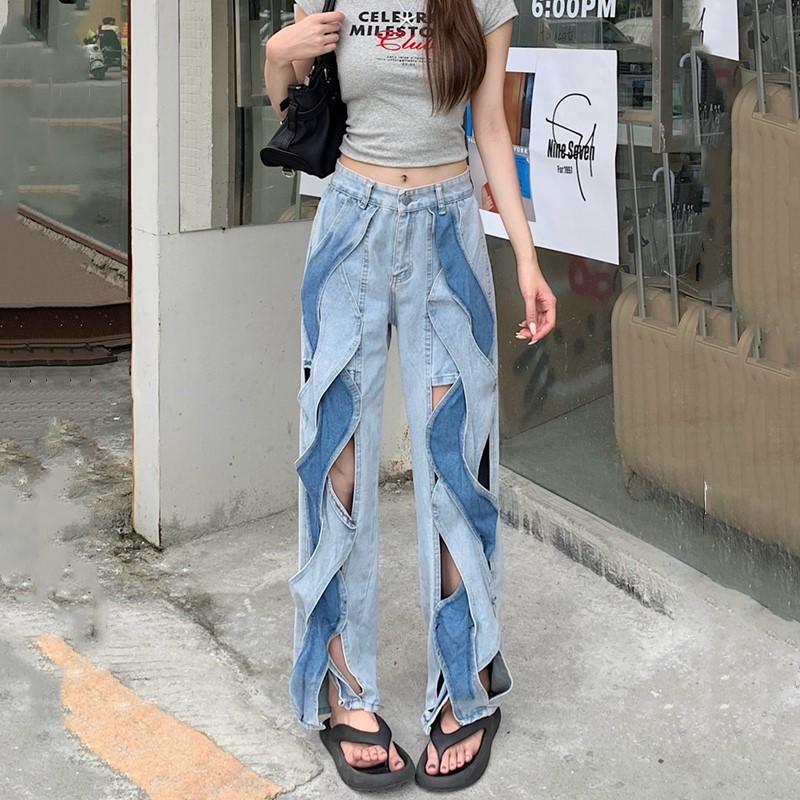 Plus Size Vintage Hole High Waist Casual Loose Women Spring Summer Autumn Jeans Denim Wide Leg Pants