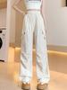 Trendy Pink Workwear Thin High-waisted Loose Casual Straight Pants