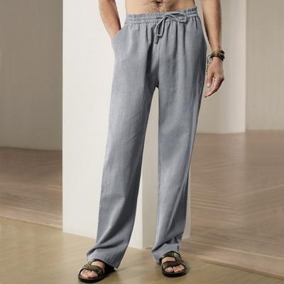 Men Pants Elastic Waist Wide Leg Long Trousers with Pockets Solid Color Loose Fit Leisure Pants Versatile Wear