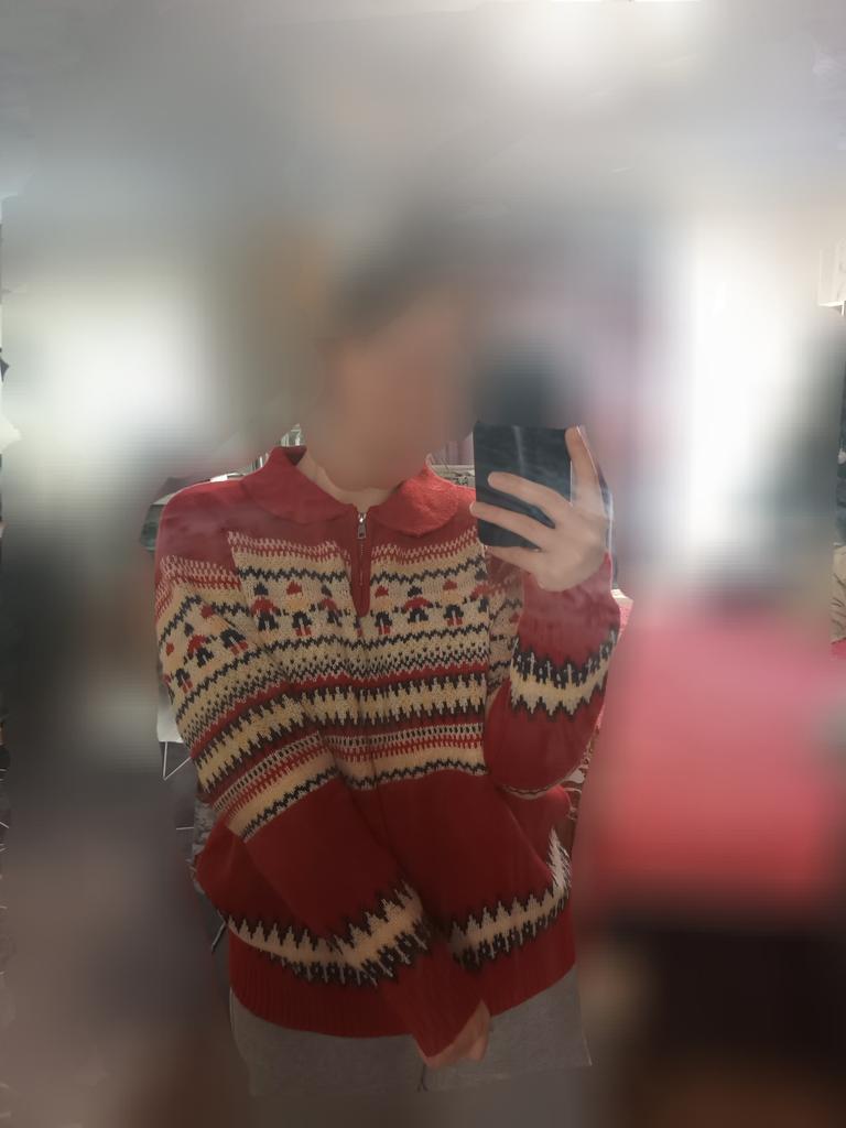 Men's Retro Red Lapel Long Sleeve Half-Zip Sweater for Autumn and Winter