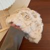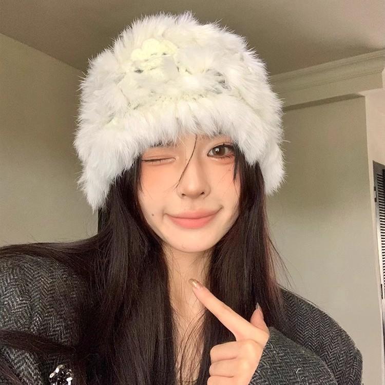 Rabbit Fur Plush Hat Women's Autumn and Winter Hollow Crochet Knitted Hat Thickened Warm Face Small Wool Hat Baotou Hat Tide