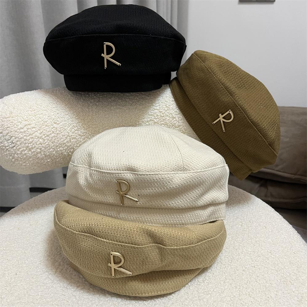 Vintage R Letter Black Beret Painter Hat Women's Versatile Face Small Bud Hat