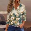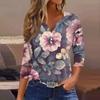 Women's Fashion Casual Floral Print V-Neck Decorative Button Three-quarter Sleeve T-Shirt Top