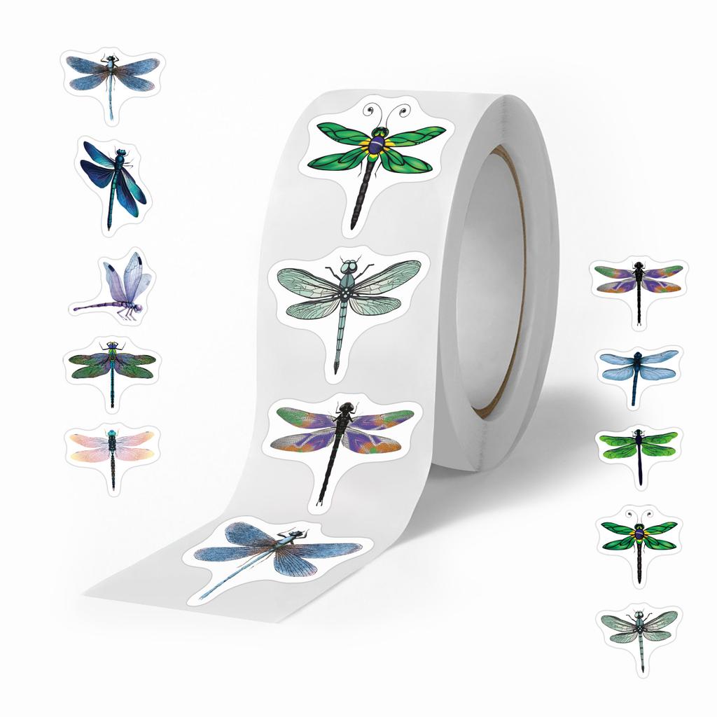 500/roll Colored Dragonfly Roll Sticker Cute Animal Children DIY Skateboard Suitcase Roll Sticker