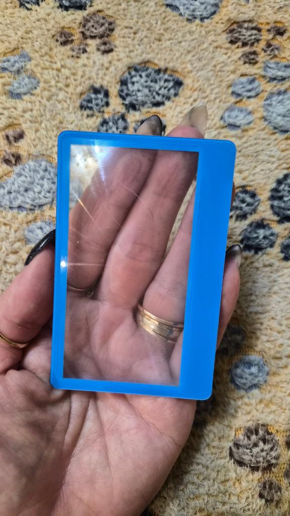 Small flexible magnifying glass for a wallet. magnifies small text