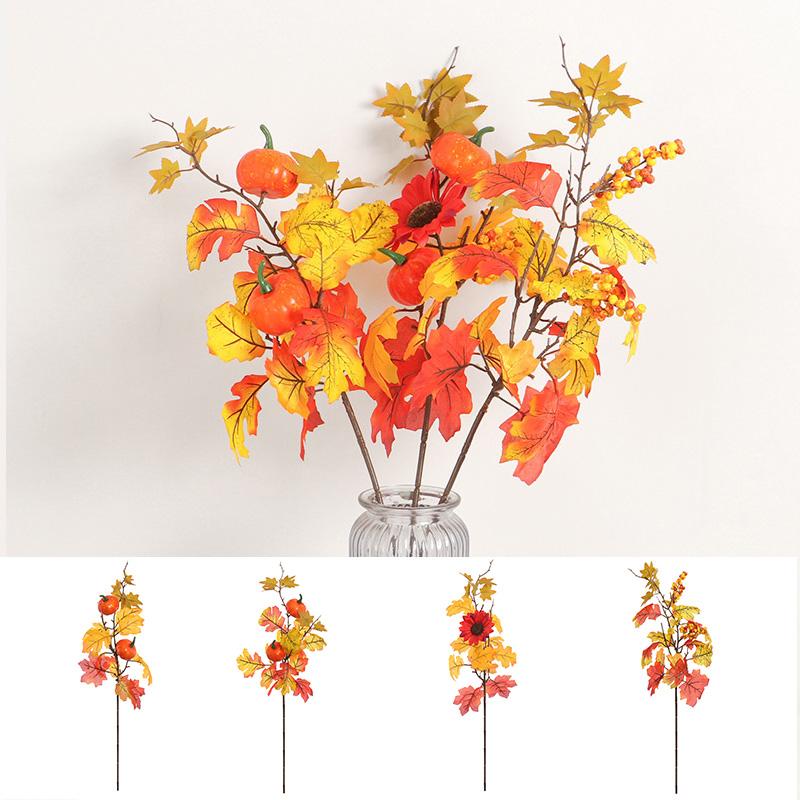 1PC Tree Branch DIY Fall Furnishings Thanksgiving Faux Pumpkin Berries Autumn Artificial Plant Realistic Maple Leaves Branches