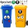 4Pcs Cartoon Face Trash Can Stickers Self-Adhesive Waterproof Pvc Glossy Finish For Wall, Toilet, Refrigerator Indoor Outdoor