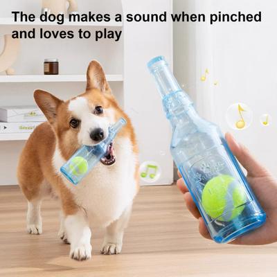 Water Bottle Dog Toy Squeaky TPR Bottle Dog Chew Toy with Tennis Ball Inside Interactive Fetch Toy for Small Medium Large Dogs