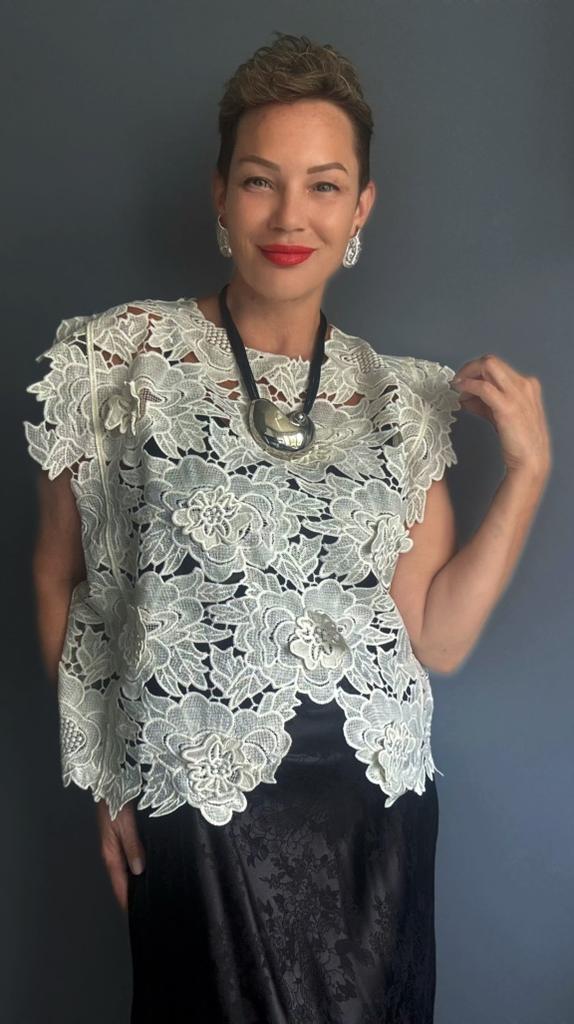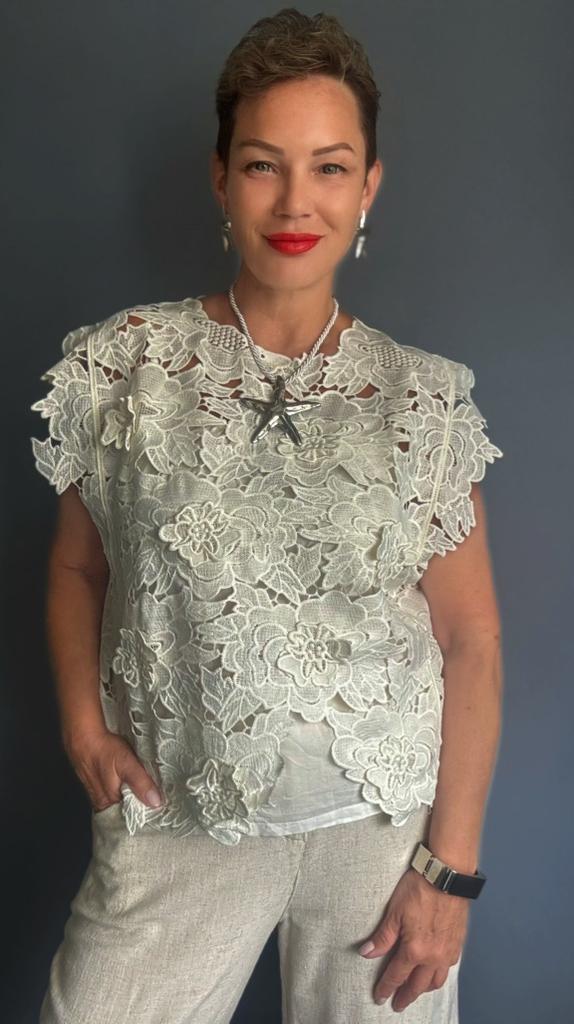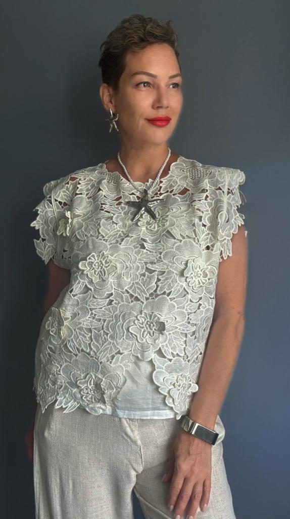 DIMANAF 2025 New Summer T-Shirt Women Basic Knitting Lace Vest Sleeveless Hollow Style Tops Loose