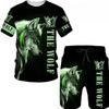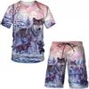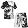 Summer Round Neck 3D Animal Printed Set Fashionable and Casual Short Sleeved Shorts Men's Sport Wear