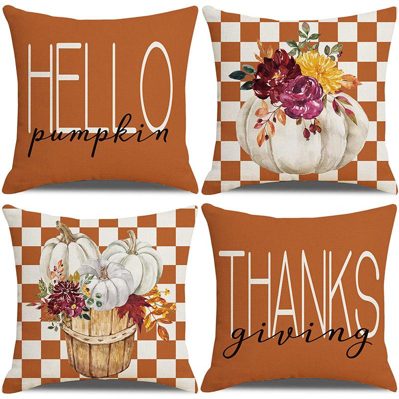 New Autumn Themed Flower Plaid Thanksgiving Pillowcase Bedside Pillowcase Home Sofa Cover