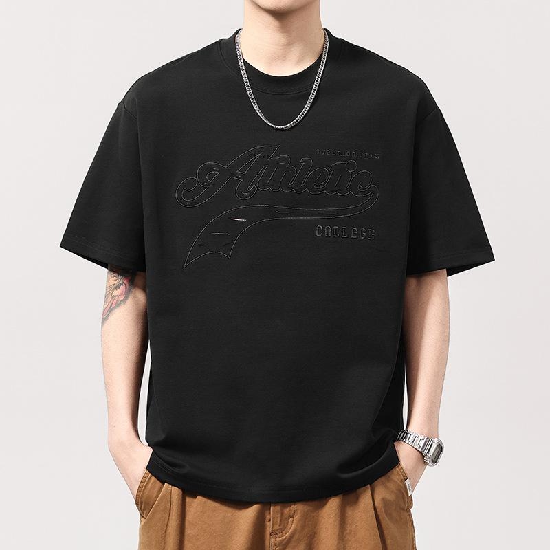Summer Letter Embroidered Heavy Short-sleeved T-shirt for Men and Women American Retro Loose T-shirt