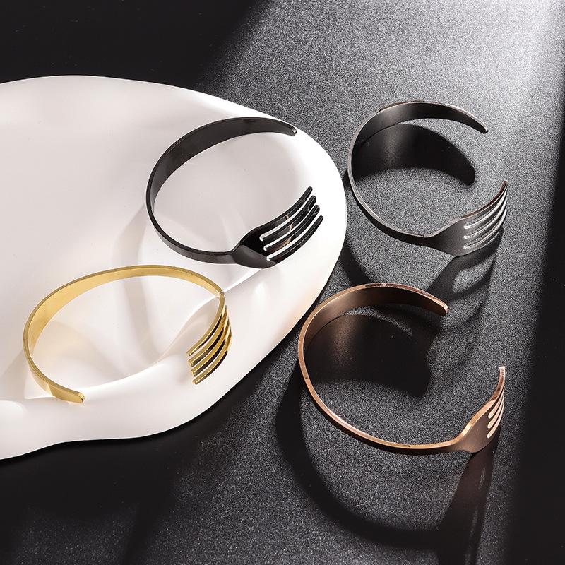 Creative Personality Simple Stainless Steel Jewelry for Men and Women Friendship Universal Fork Type Open Bracelet Hand Jewelry