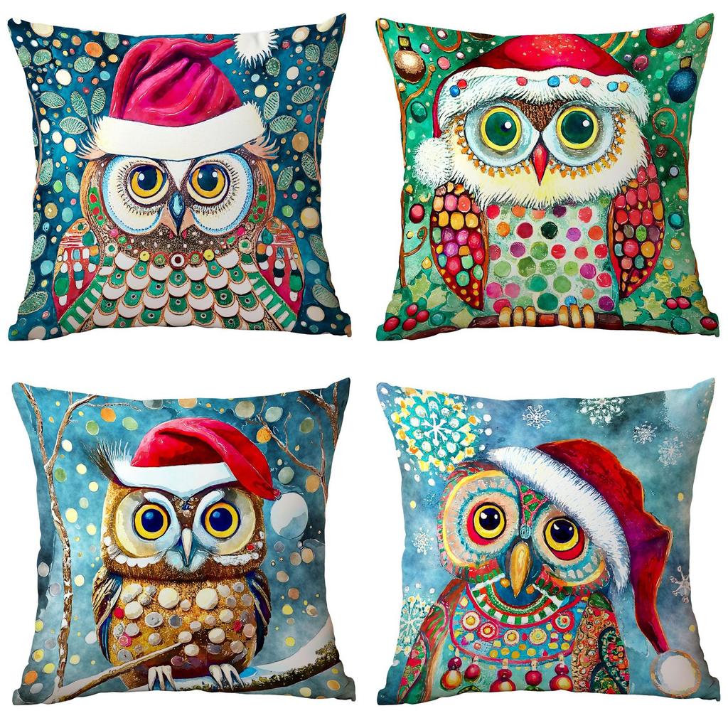 New Christmas Pillowcase Christmas Watercolor Owl Watercolor Cartoon Home Living Room Sofa Cushion