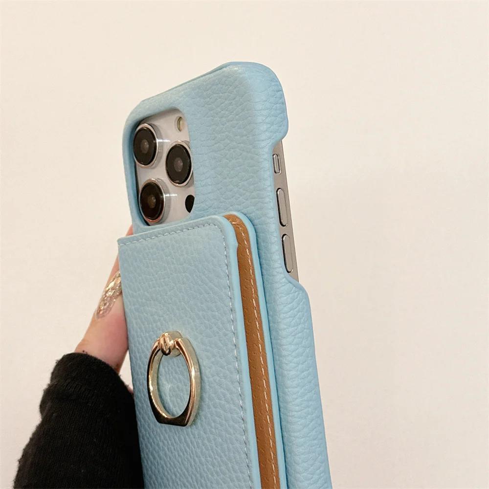 Ring with Card Holder Phone Case for IPhone 15 14 11 Pro Max 13 12 Mini XR XS X Max 8 7 Plus PU Leather Shockproof Shell Cover