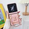 Grid Pattern Lambskin Cute Little Bear Wrist Strap PU Leather Phone Case for Motorola Razr 60 Pro 50 40 Ultra Shockproof Cover