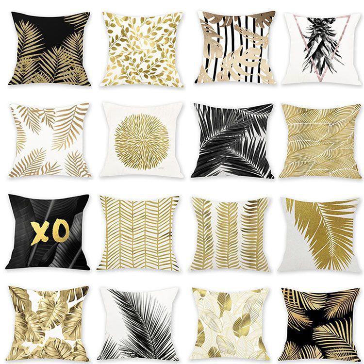 Printed Imitation Gold-pinning Plush Creative Leaf Pillowcase Style Pillow Waist Sofa Decoration