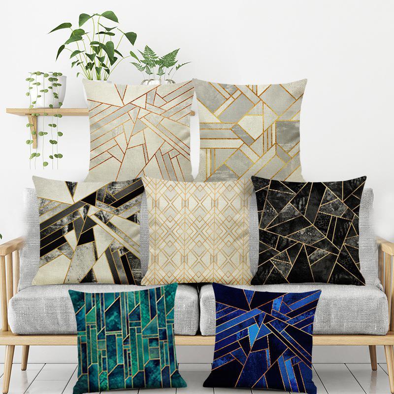 Ins Style Marble Geometric Linen Pillow Sofa Cushion English Letters