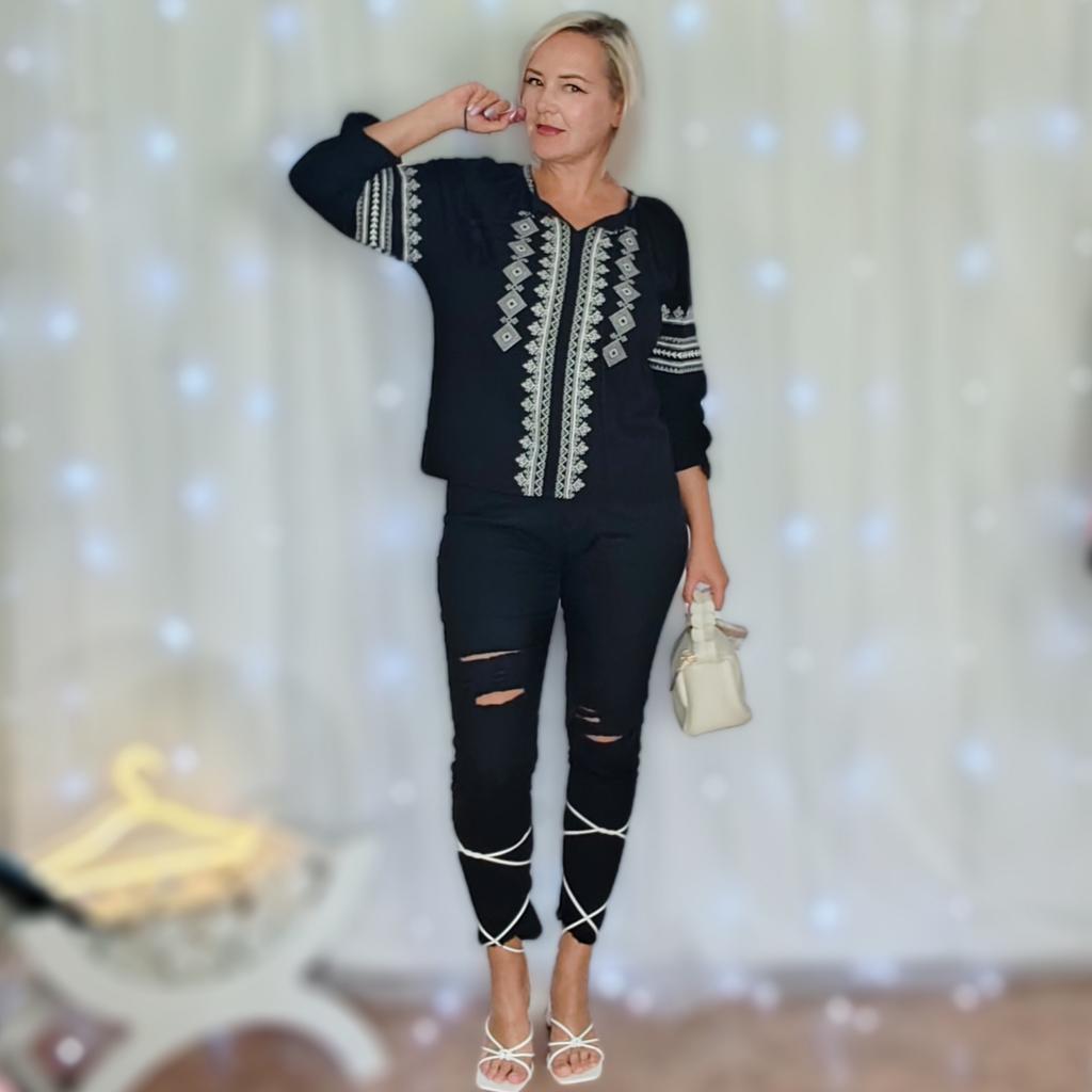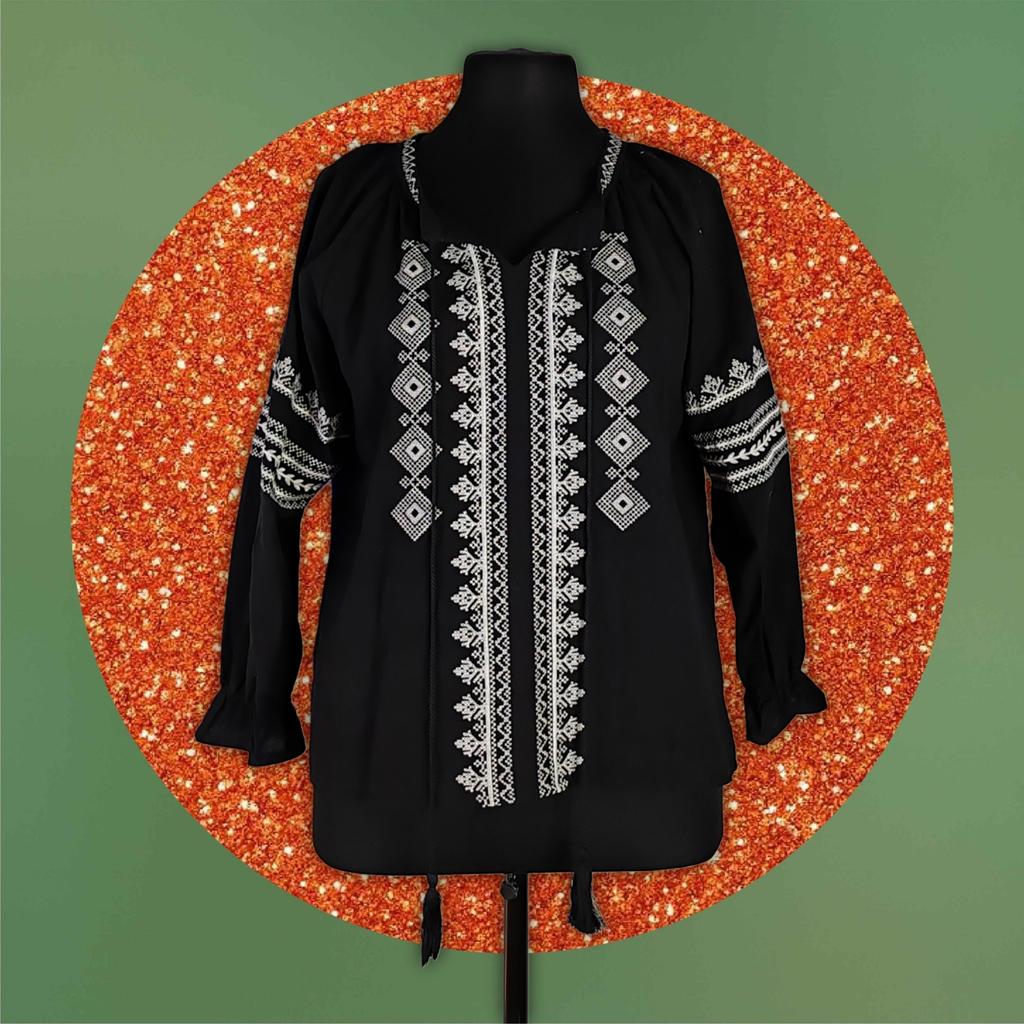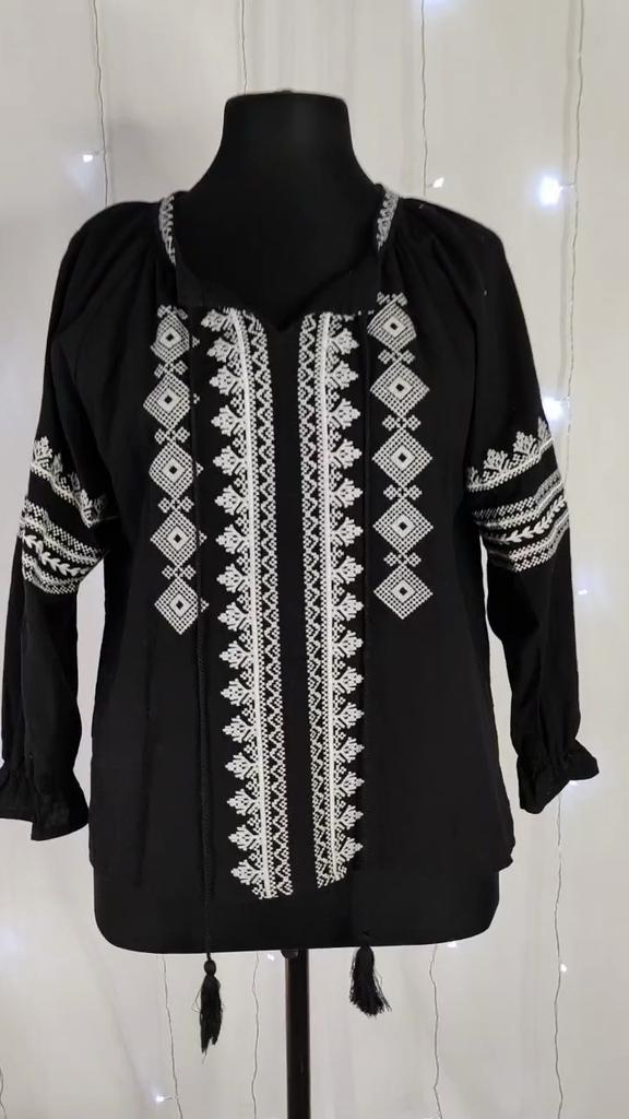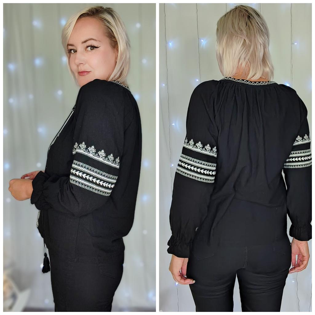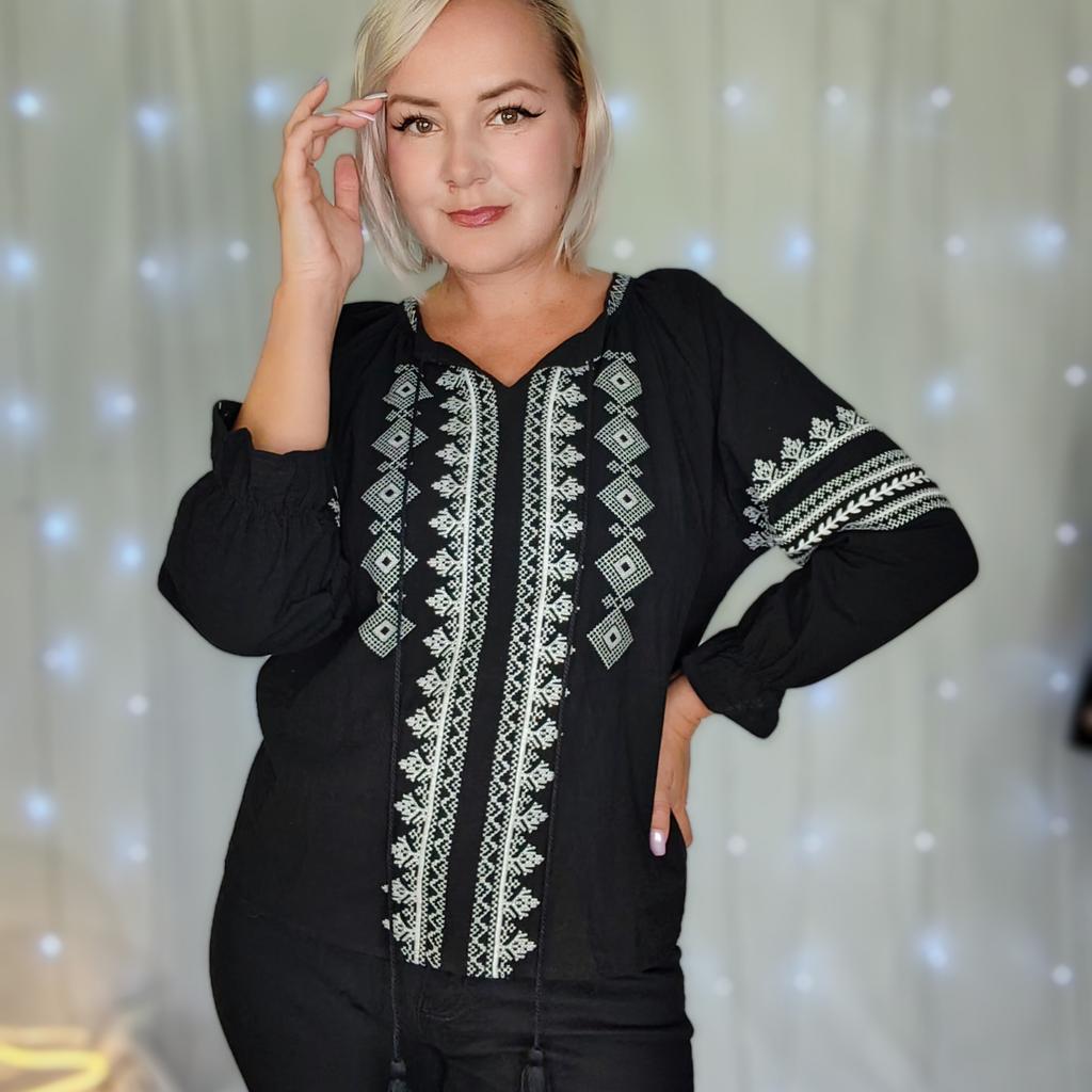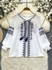 Women's Spring Autumn Shirt New Retro Bohemian Embroidered Lace Up Lantern Long Sleeves Blouse Top
