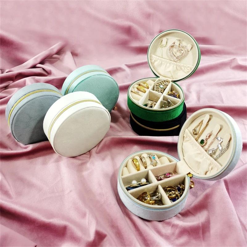 New Round Flannelette Jewelry Storage Box Portable Travel Jewelry Box Ring Earrings Bracelet Necklace Multi-functional Organizer