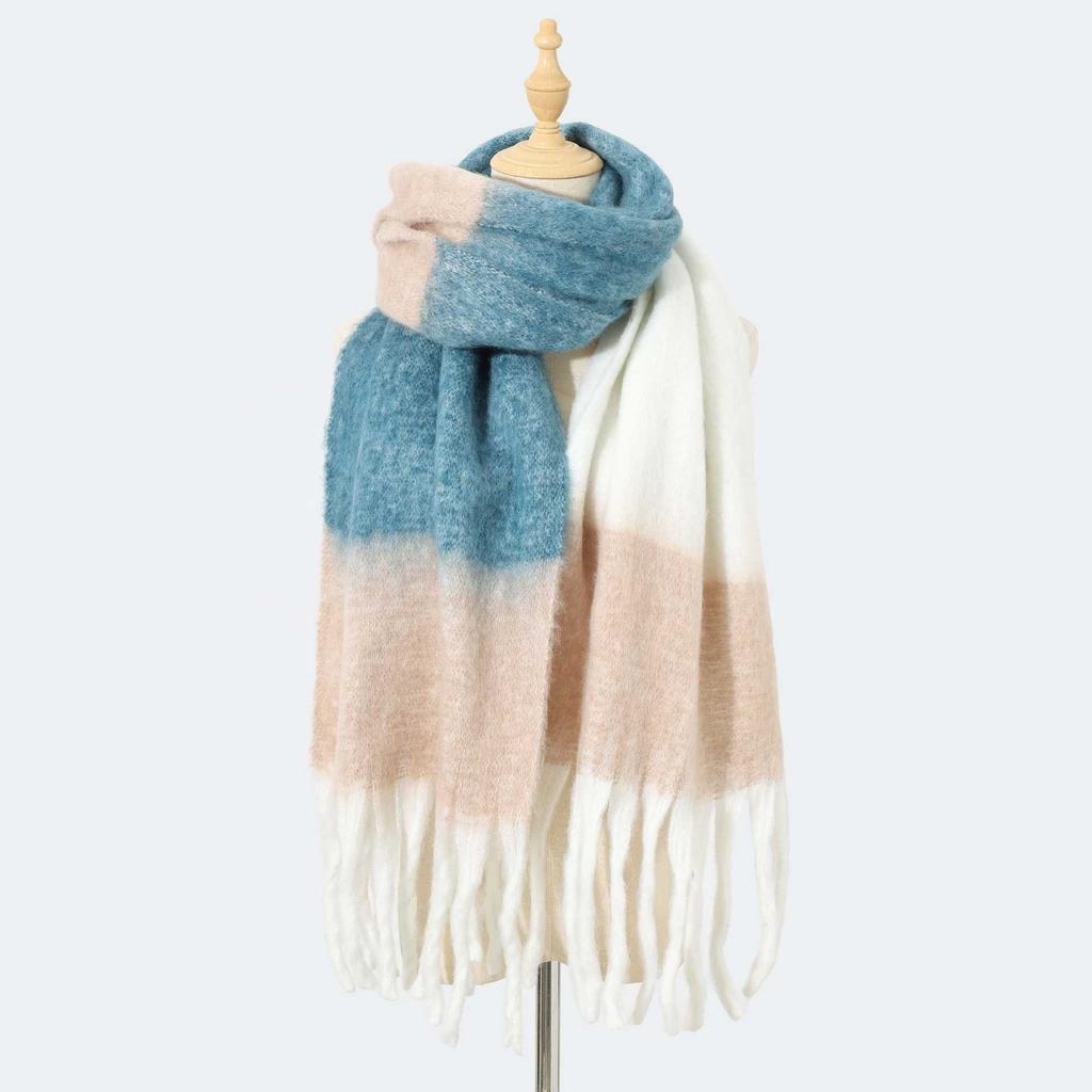 New Mohair Color Matching Fringed Scarf Women's Autumn and Winter Advanced Sense Contrasting Colors Thickened Warm and Comfortable Versatile Scarf