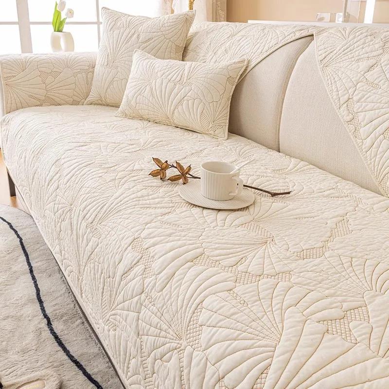 Four Seasons Cotton Non-Slip Sofa Cushion Pure Cotton Beige Summer Nordic Cushion Universal Sofa Towel Cover Cover Cloth