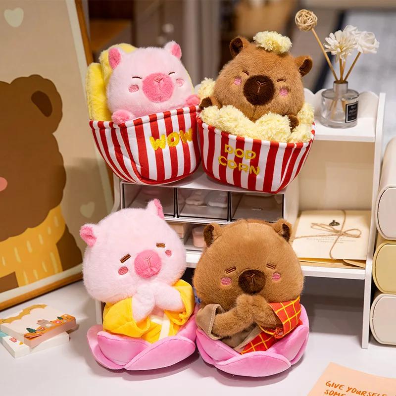Kapibala with Lotus French Fries, Pig Dolls Plush Toys Birthday Gifts Children's Day Gifts Sofa Cushions Bedroom Decor