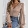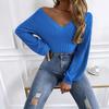Ladies Autumn Winter Long Sleeve V Neck Solid Color Slim Fit Pullover T Shirt Top