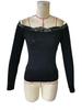 Spring Elegant Fixed Item Ladies Lace Splicing One-line Collar Strapless Long-sleeved T-shirt Versatile Closet Essential Fashion Items Shirt