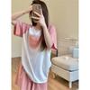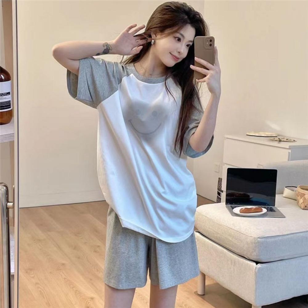 New Summer Color-blocking Short-sleeved Pajamas Set for Women's Gradient Smiley Face Sweet and Cute Cartoon Thin Style