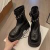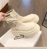 Studded Female Short Shoes Round Toe Booties Elegant With Medium Heels Women's Ankle Boots Comfortable Pu Designer Luxury New In