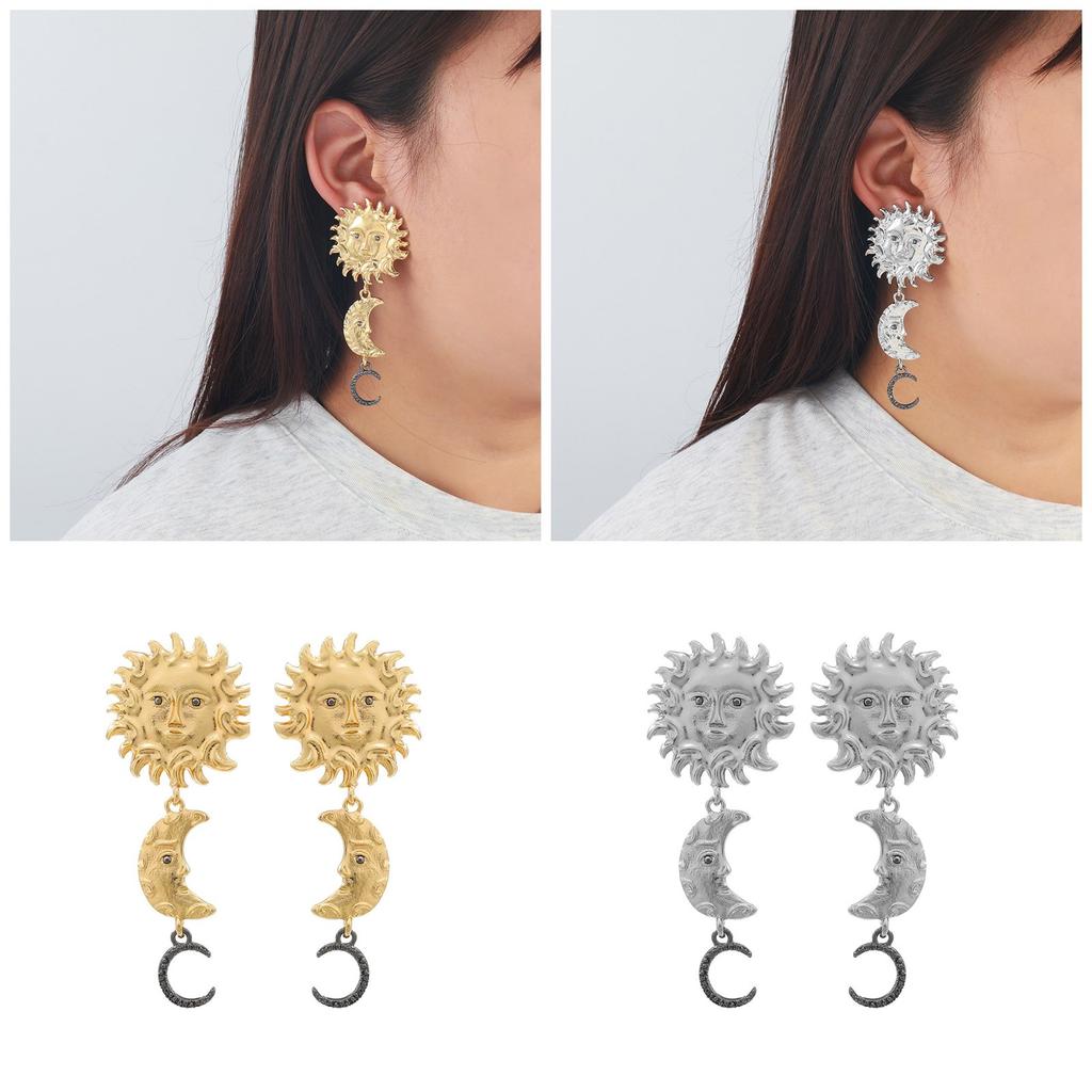 Artistic Sun And Moon Dangle Earrings Zinc Alloy Drop Earrings Sun Moon Ear Studs For Beach Vacation Party Outfit
