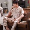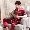 GMXIA Spring and Autumn Men's Pajamas, Long Sleeves and Long Pants, Thin Ice Silk, Teen Home Wear, Silk Set, Plus-size